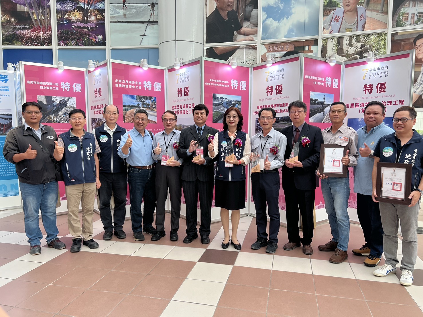 亞新南區辦事處張厚起經理(左四)參加臺南市政府第7屆公共工程優質獎頒獎典禮